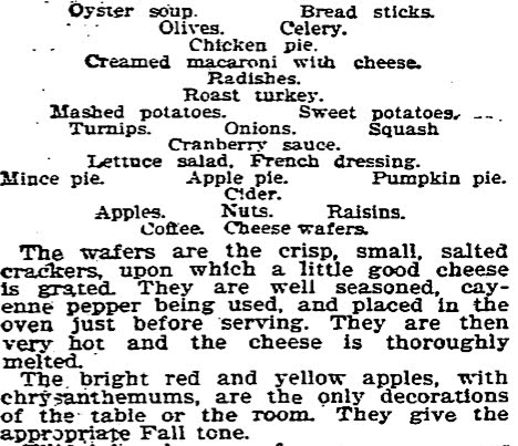 I can learn that yesterday may not be so different from today with holiday cooks following the suggestions of celebrity chefs. The Thanksgiving menu of a famous chef was published on that November 1895 day: