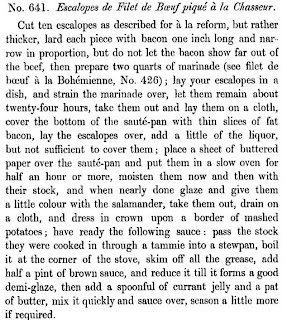 He made major innovations in the way the troops were fed during the Crimean war, inventing a camp stove that was still in use till the late 20th century and he helped to end rampant food poisoning and malnutrition in the army (probably saving as many lives as the more famous Florence Nightingale was doing in the field hospitals). He had just published his cookbook, “The Gastronomic Regenerator”in 1852 and this would have been a popular treatment for beef filets or escalopes in 1853:
