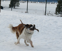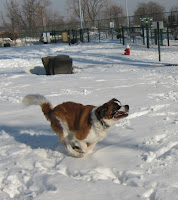 AT last, we see pictures of Petunia! My love of big dogs comes from a St. Bernard named Mohammed, who lived in an apartment down the way from us, and whose owner would let me walk him every day. So, Petunia in the snow made me smile.